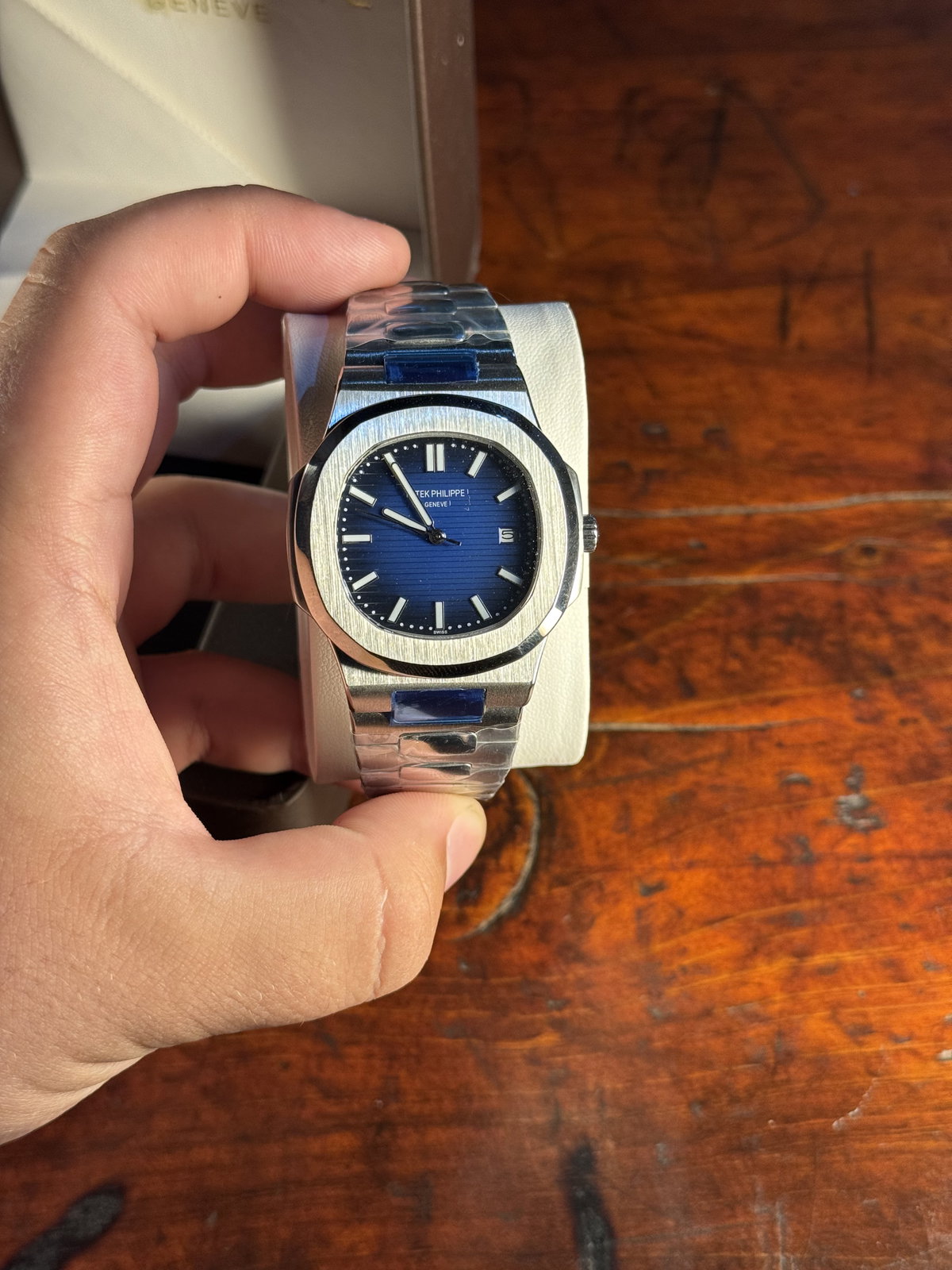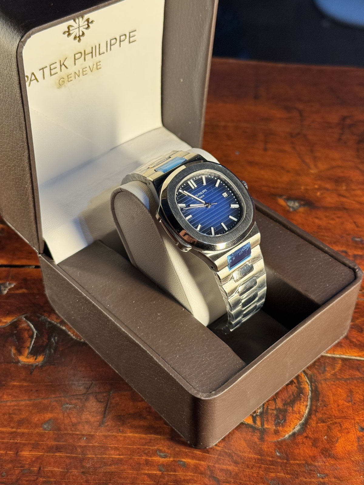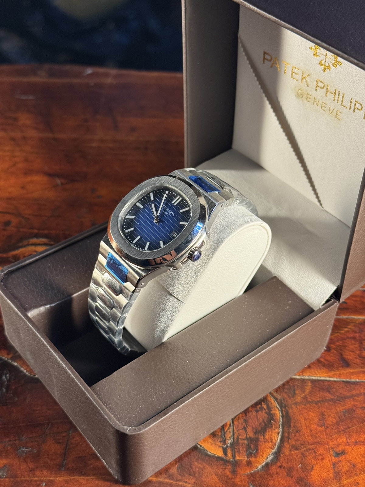 Patek Philippe Nautilus Azul ACERO 904L-Cristal Zafiro-Automatico-AAA + Estuche